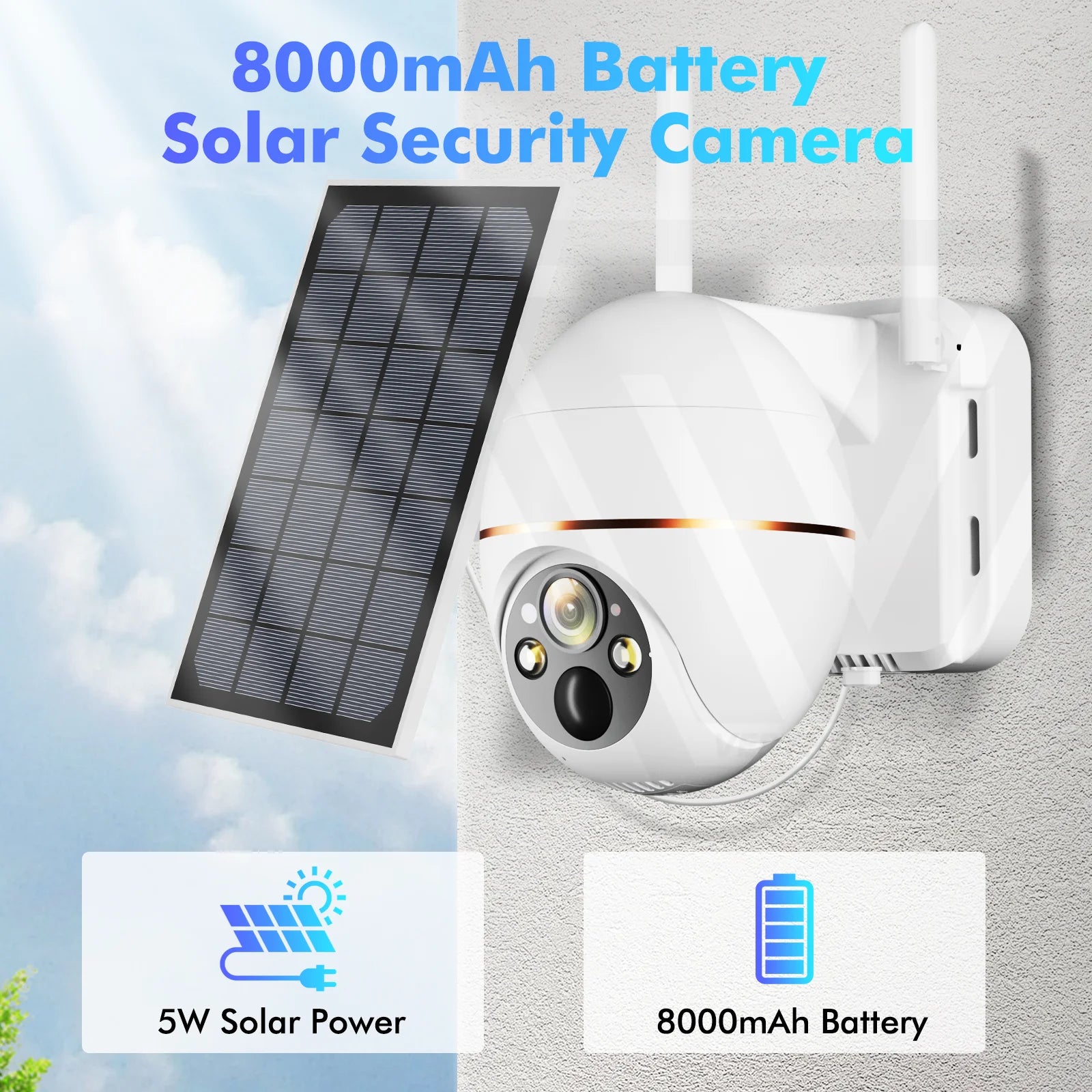 5MP Solar WIFI IP Camera 8000mAh Battery PTZ Surveillance Cameras Wireless PIR Human Tracking CCTV Outdoor HD Waterproof 5X Zoom
