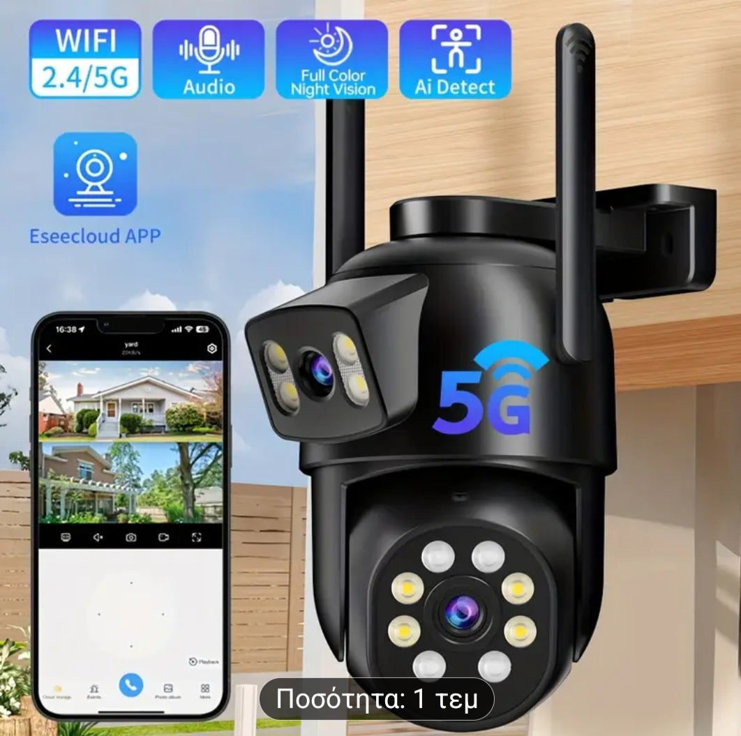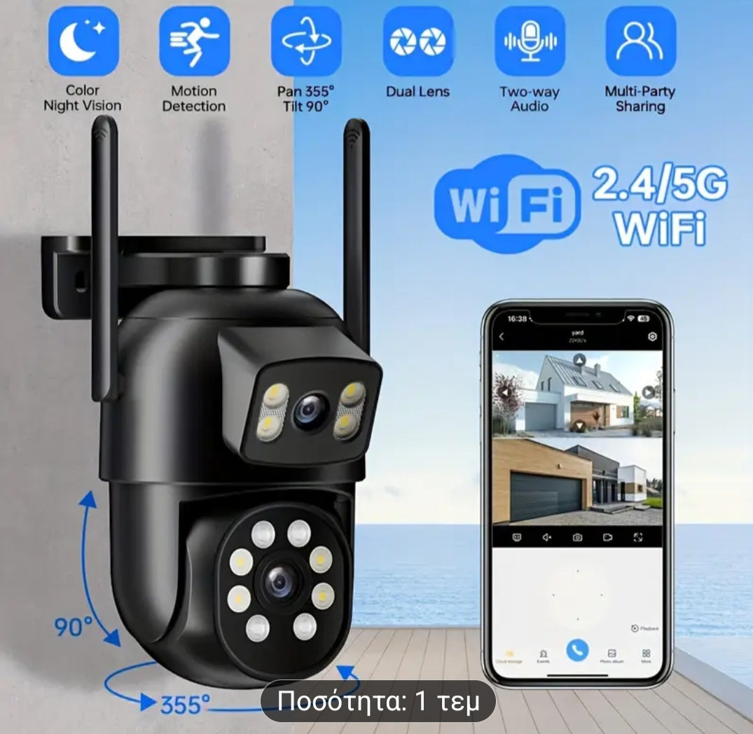 Aσύρματη κάμερα ασφαλείας με διπλό φακό.