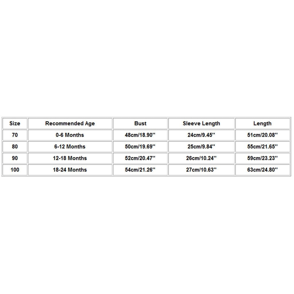 | Size | Recommended Age | Bust | Sleeve Length | Length |