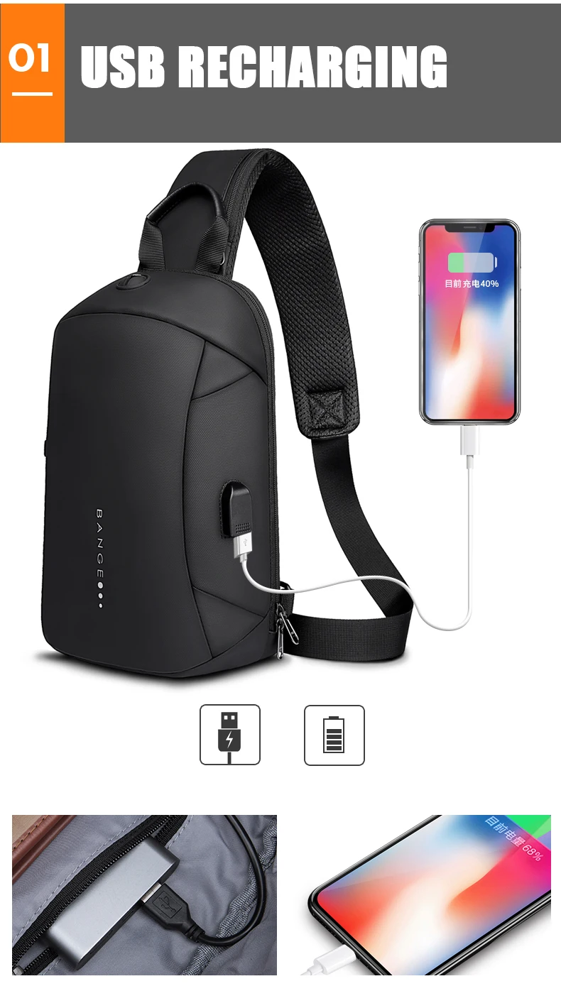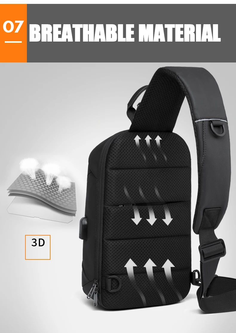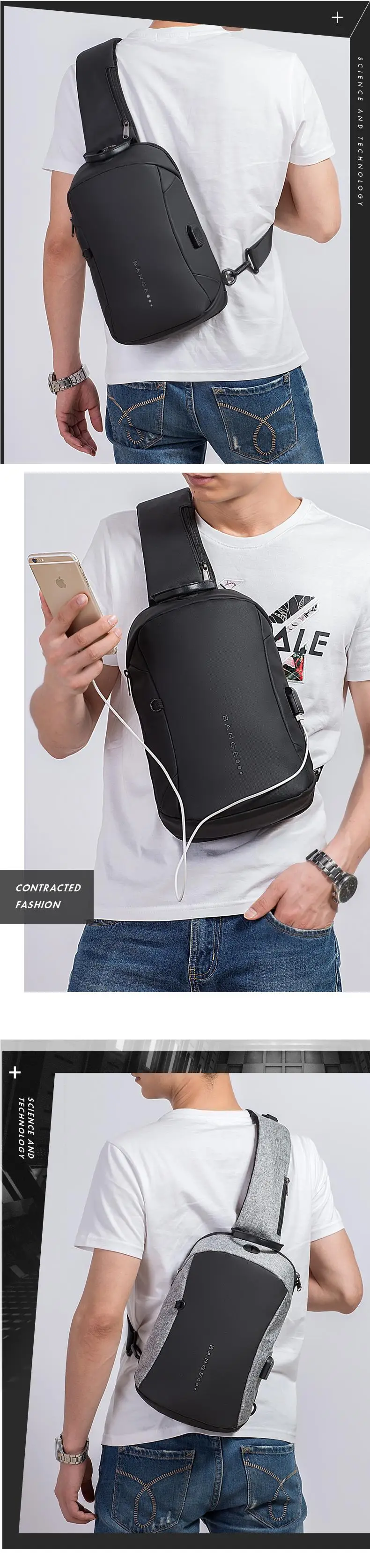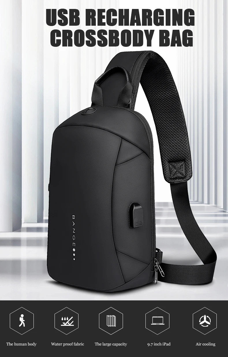 New Fashion All-Match Trend Anti-Theft Technology USB Portable Outdoor Shoulder Bag Men's Messenger Chest Bag