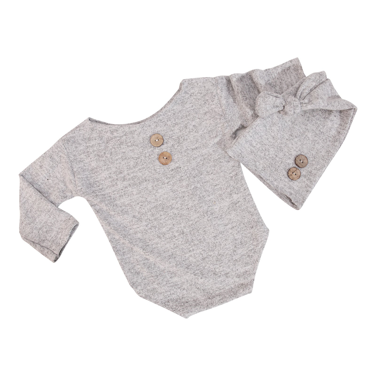 Newborn Full Moon Hundred Days Photography Baby Photo Clothes Props Button Hat 2-Piece Set