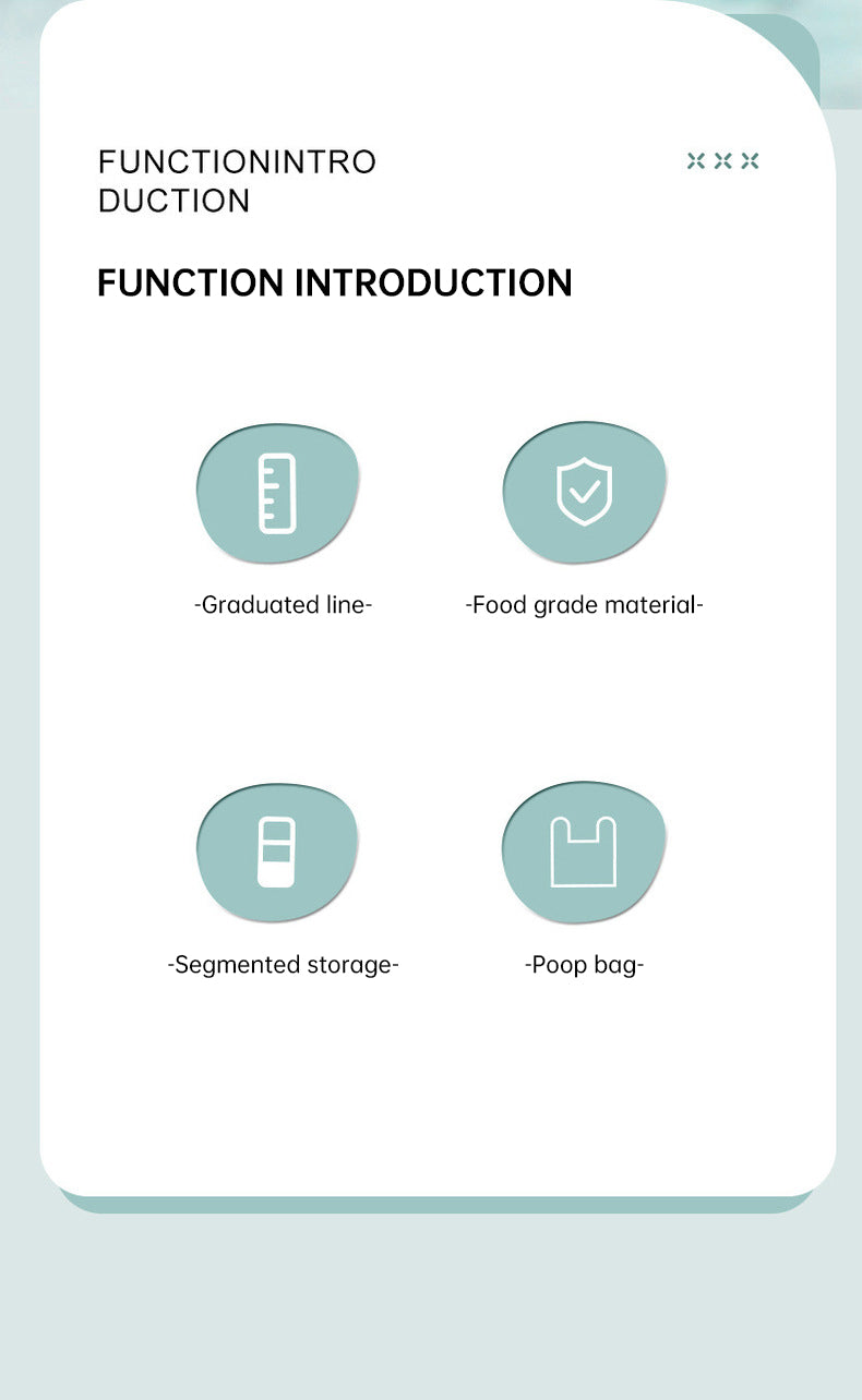 1.3-in-1Convenience: This pet water bottle offers a unique three-in-one feature, providing 300ml of water capacity, 100g of food storage, and even includes 15 disposable poop bags. Now you can carry everything your pet needs in one compact and portable solution.